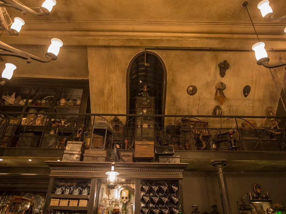 This dark and dusty Knockturn Alley shop is infamous for shady patrons. As you walk among the dimly lit shelves and displays teeming with malevolent relics, you’ll find Death Eater masks, skulls, apparel, accessories, jewelry, and collectibles.