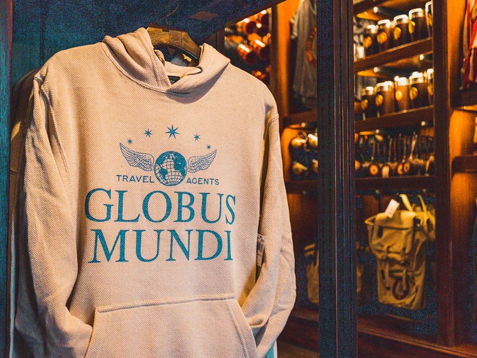 Globus Mundi is a travel agency of the wizarding world. Stop into their shop over by Carkitt Market where you can get all your travel essentials for your next magical journey like luggage tags, wallets, sweatshirts, and more.