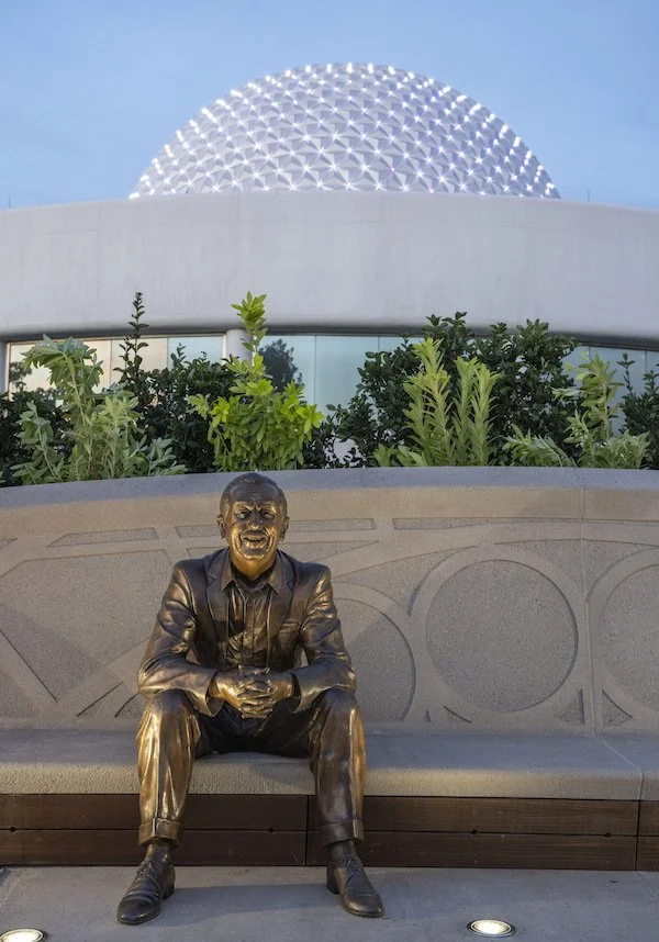 The brand-new statue, titled "Walt the Dreamer," portrays Walt during a later stage of his life when he was envisioning the grand Florida Project and the Experimental Prototype Community of Tomorrow (EPCOT).