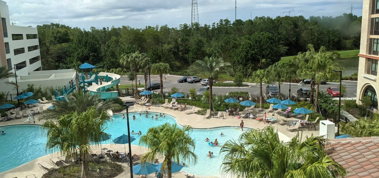 Flamingo Crossings is also home to the Disney College Program housing complex for Disney World interns, so it’s not unusual to see kids walking around in their Disney costumes before or after their shifts.