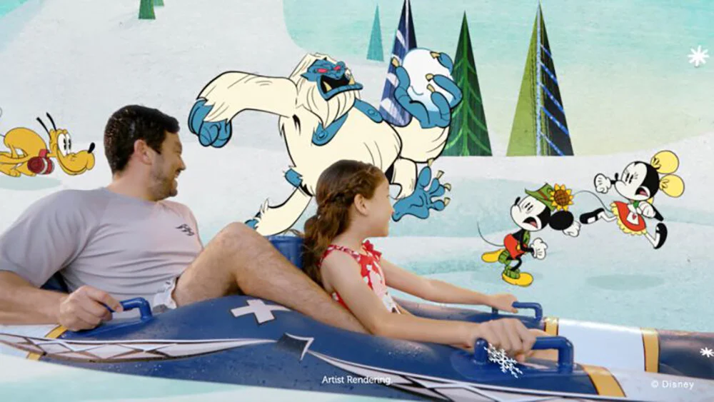 “Swiss Meltdown,” where Mickey and Minnie will invite Guests on a mountain sledding excursion that will inevitably (and hilariously) go awry.