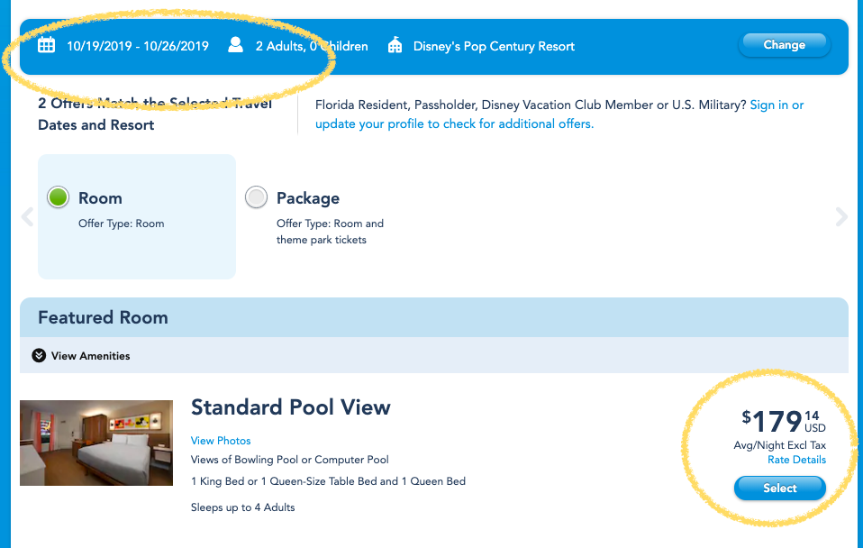 For a list of current offers for Walt Disney World Resort, visit the Offers Page.