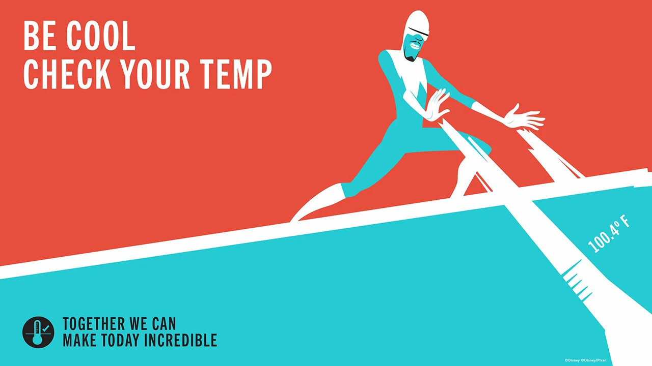 Disney is looking forward to welcoming you back to the magic in just a couple of weeks. Mr. and Mrs. Incredible, their incredible kids and some other familiar faces will show us how to use our powers to help everyone be well. For example: