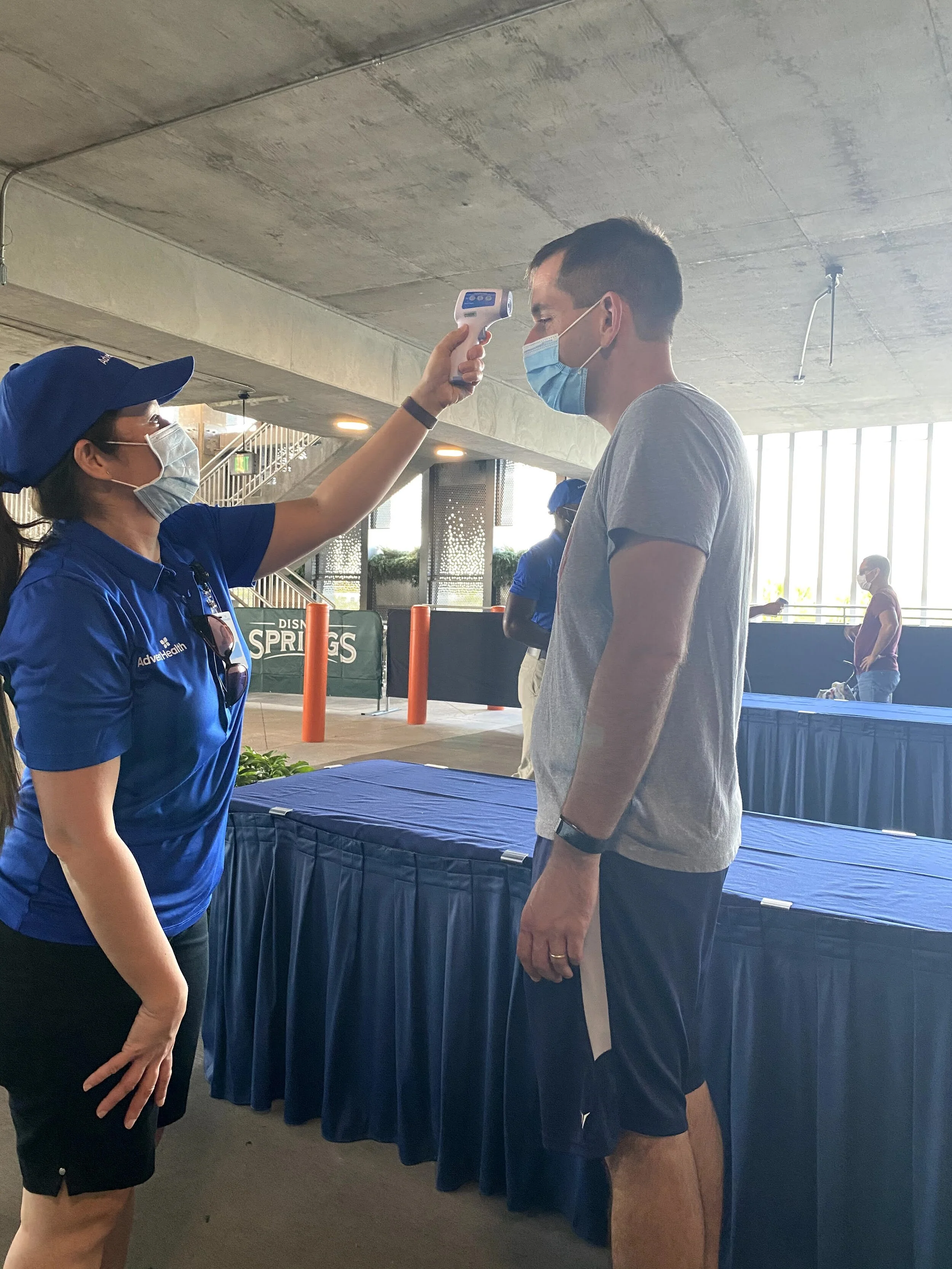 Yours truly having my temperature checked at Disney Springs - Walt Disney World. Temperature screenings will end on May 16, 2021.
