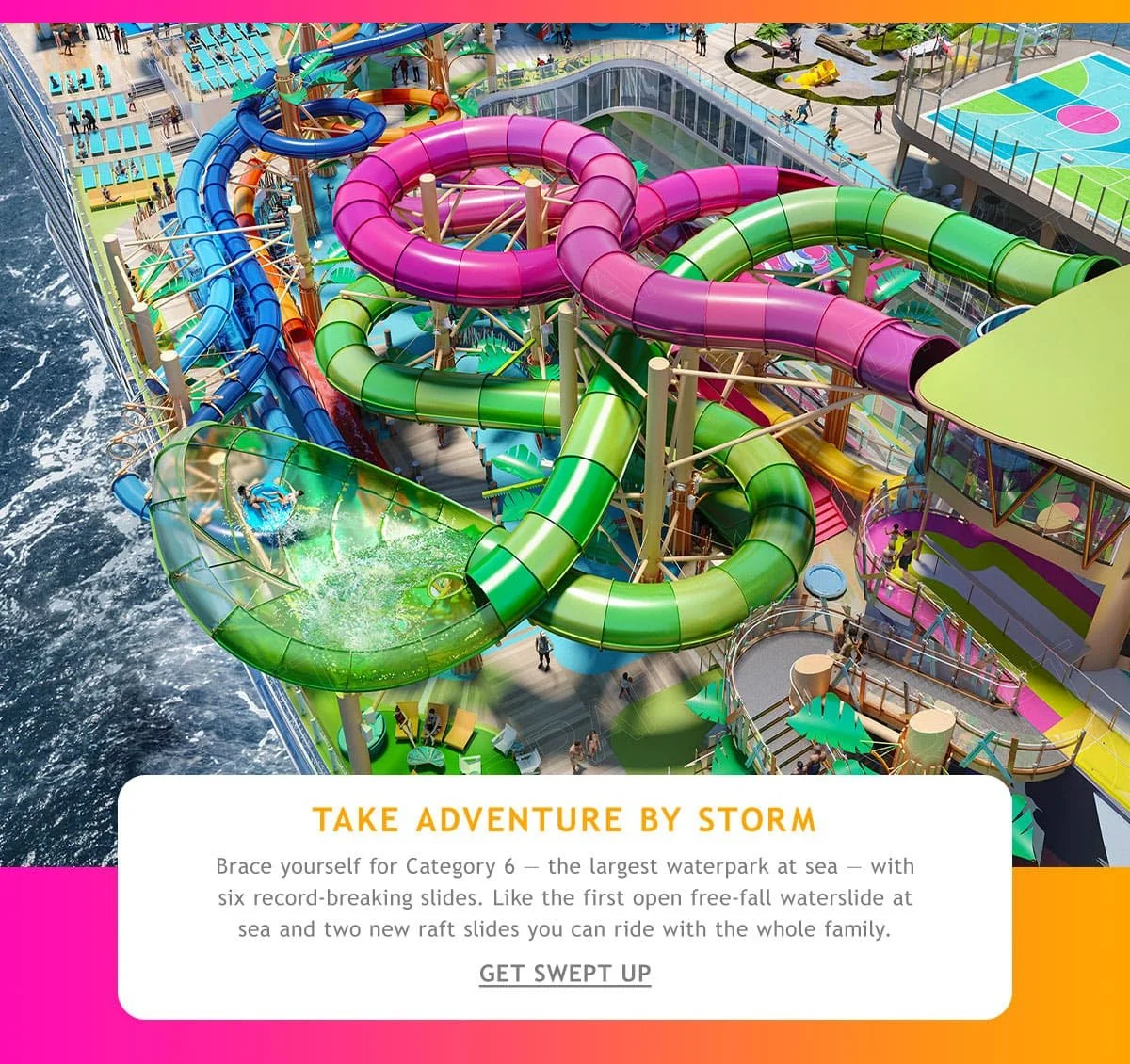 Cue the thrills with unforgettable experiences onboard the cruise ship, dig into delicious dining from around the world or soak up the sun at a newly designed resort-style pool deck that brings the island vibes poolside.